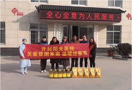 心系群众,服务基层,是医院一贯的优良传统,开封阳光医院不断完善志愿服务队建设,全力提升志愿服务项目品质,深入基层开展各种义诊及志愿服务活动。多年来,医院广泛开展贫困户慰问活动、义诊活动等。通过志愿服务,将优质医疗资源输送到基层,书写党员干部责任意识,努力打造有温度的医院。